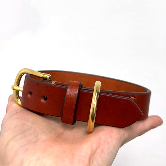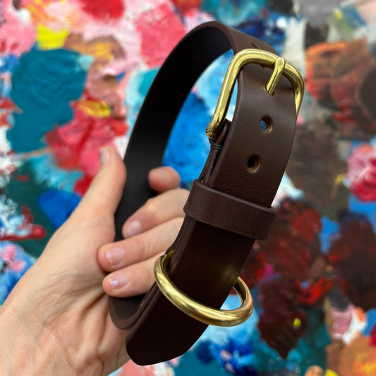 Our pet collars are crafted with the same care and attention to detail as the rest of our leather goods. Made from full grain, vegetable-tanned leather and finished with solid brass hardware, each collar is built to last through daily adventures while softening beautifully over time. Hand-crafted in our South London studio and can be personalised with your pets name.
